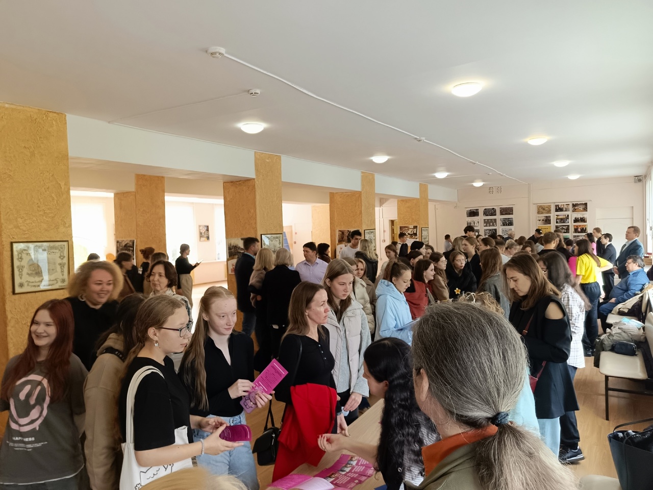 В фойе актового зала была открыта выставка, рассказывающая о творческой и научной жизни каждого факультета института. Все желающие могли задать интересующие вопросы.